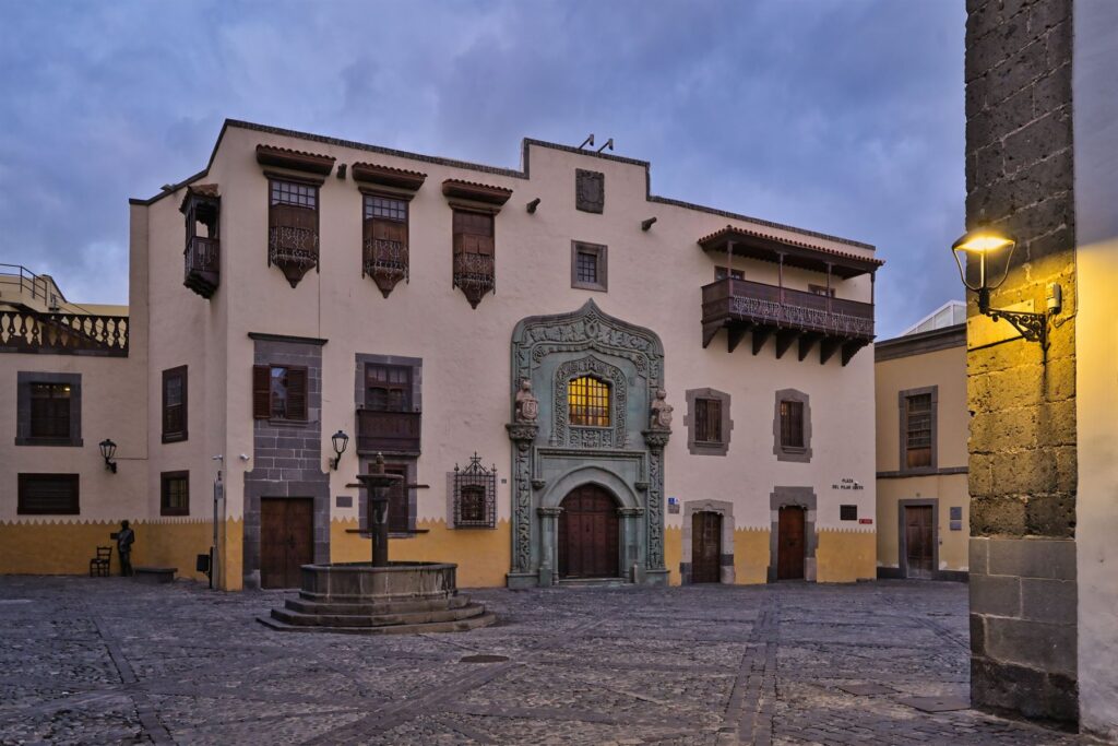 Der historische Stadtteil Vegueta liegt im Süden der Hauptstadt Las Palmas. Dort gibt es einige interessante Gebäude, unter anderem das Kolumbushaus am Plaza del Pilar Nuevo, das auf diesem Foto zu sehen ist. Es war gar nicht so einfach, einen Moment ohne Personen abzupassen – letztlich ist es mir jedoch gelungen.