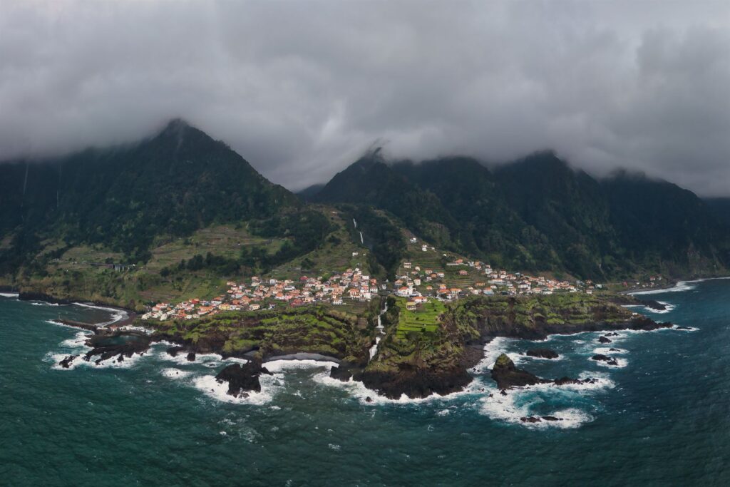 Den imposantesten Anblick auf die Ortschaft Seixal hat man eigentlich nur vom Meer aus. Dafür bietet sich natürlich die Drohne an. Aufgrund des wechselhaften Wetters in den letzten Tage hatte ich allerdings mehrere Anläufe gebraucht, bis es dann geklappt hat. Der Wind war jedoch immer noch ordentlich, was mir die Drohne auch mitgeteilt hat. Allerdings erst als sie schon relativ weit über dem Atlanik flog. Deshalb war ich erleichtert, als ich sie wieder zurücksteuern und sicher landen konnte.